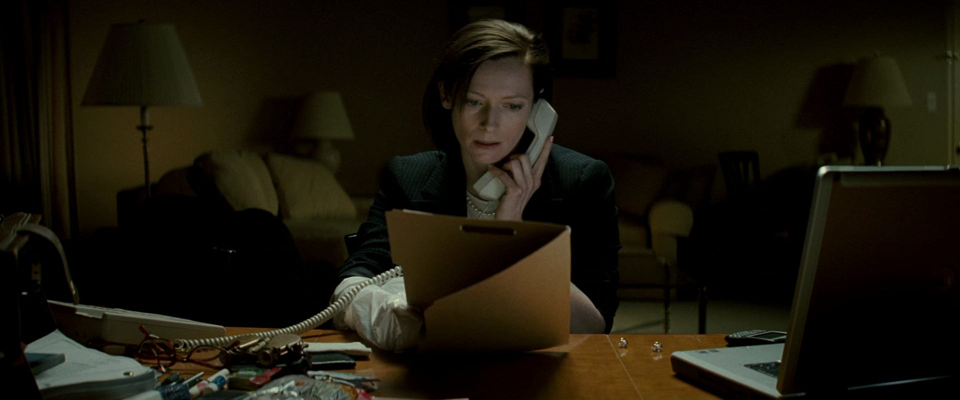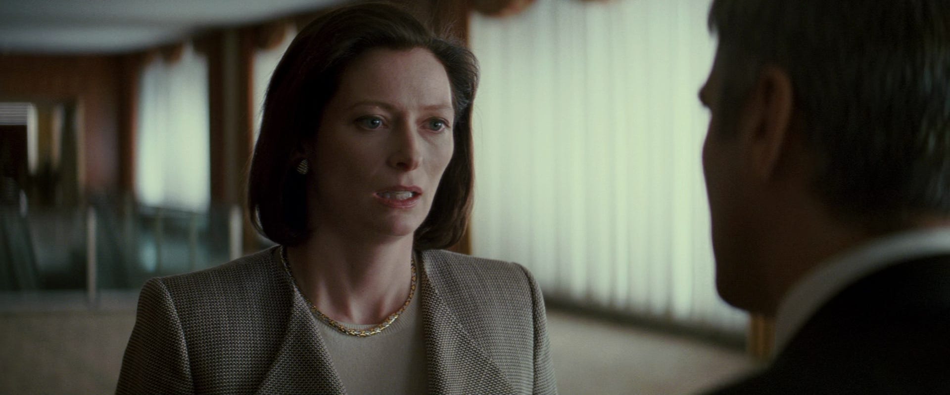 If Karen were anyone else, you might say she was tragic. A striver hollowing her soul to climb the mountain. Except that mountain is made of human skulls and her high heels are slipping in the eyeholes. And it’s a long way down. Painting on a thick veneer of competence consumes her hours. “Balance?” she quips in her trained, forced chuckle. “I think that’s something you search for your whole life.” Vulnerability makes her damp with nervousness, not an innate evil. Precarity, rather than bloodlust, has her dialling the hitman’s number. Swinton plays her on the near fringe of pathetic, always straining to fit the job that feels so large, so important, so male. Such effort has turned Karen into a true believer. Every other character can see the grubbiness of their task, the dirt on their paws. It turns them either mad, or sane, or cynical. As Marty says blithely to Michael: “This case reeked from day one.” But not Karen. Her brain is dropsical, logged with stock response, business cliché, with the fear of being found out. That her smarts were not natural but rehearsed. That she doesn’t really know how this system works after all. Just listen to the perfect smallness of her final line, when Michael is snapping a mouth-open picture on the concourse, the entrapment complete. An alien tongue, baffled: “You don’t want the money?” As if the money could straighten all chicanes, as if it were the only currency of their world, as if the lone product this tender is always guaranteed to buy is silence – the silence of complicity, or the grave.