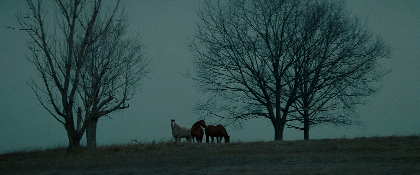 Where would Michael Clayton be without its ending? A fine thriller, sure. Sleekly plotted. Written well. An actor’s showcase. A reverent tribute, minor-key and soft-pedalled, to earlier noirs (Klute, The Big Sleep). But its end is its making, its consummation. That end lofts Michael Clayton from greatness toward immortality, toward necessity, the sense we would be worse off if it weren’t around. That bonanza, boomtime year, and the Oscars that followed in the winter, had the film squaring off against big, mean, serious, American Epics: There Will Be Blood, No Country for Old Men, The Assassination of Jesse James… They will all endure for their ambition, their baritone recitations of history. Each are united in the theme of human weakness for lucre, joined in suspicion that the hunt for enrichment will turn your heart gangrenous and cruel. In the West, at the frontier, humanity spoils on the sand. Tony Gilroy’s picture – his first as director – is on the other hand lean and mucky and present-day. The soul has soured, riches piled up in its place. It is the end-point of that history, its termination, the starkness of everyday life shorn of myth – most especially those myths birthed by the cinema. The film isn’t in defiance of genre, like those others, but its ultimate expression: the perfect legal thriller, the essential detective story. Perhaps it is appropriate then, with our distance in time – time which is the only true clarifier and worthy judge – that Michael Clayton is nearly two decades old, the age of maturity. And we find, in that age, that it might outlive and exceed its bombastic siblings.